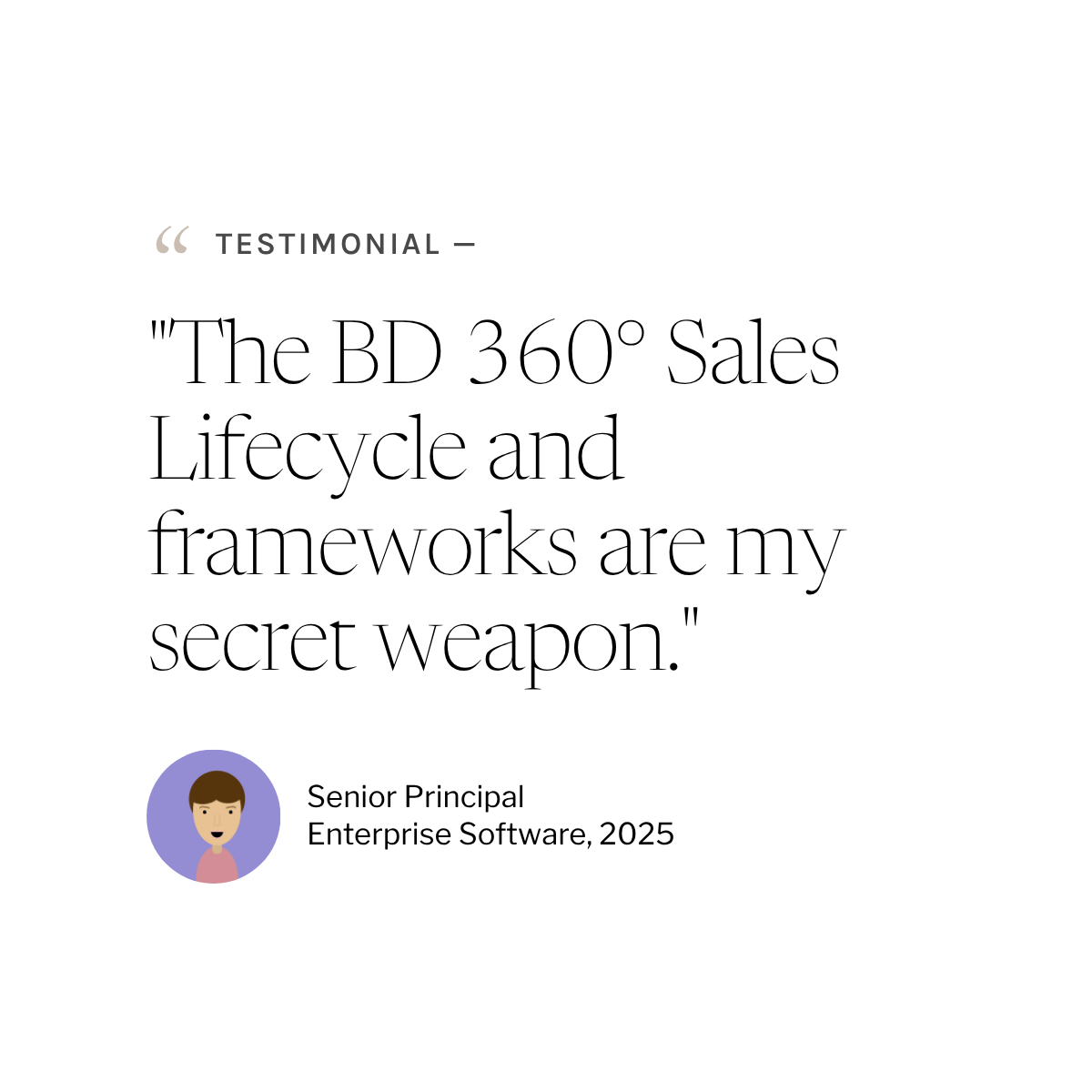 With the comprehensive tools and strategies offered by BD 360°, professionals gain the clarity and confidence needed to win smarter and maintain their success in one of the world’s most competitive markets, setting the foundation for lasting impact.